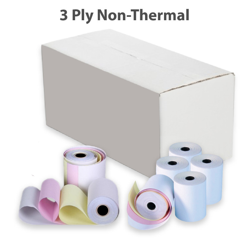 Tags: Non-Thermal Printer Rolls, 76mm x 76mm Rolls, Dot-Matrix Printer Paper, Cash Register Rolls, Bulk Printer Rolls, 3ply non-thermal,